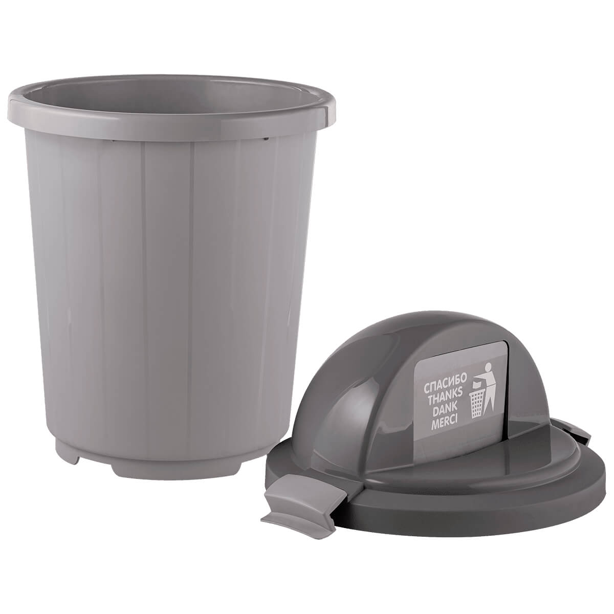 Выберите серый мусорный бак с крышкой-клавишей для утонченного и удобного подхода к управлению отходами в вашем доме, офисе или другом пространстве.