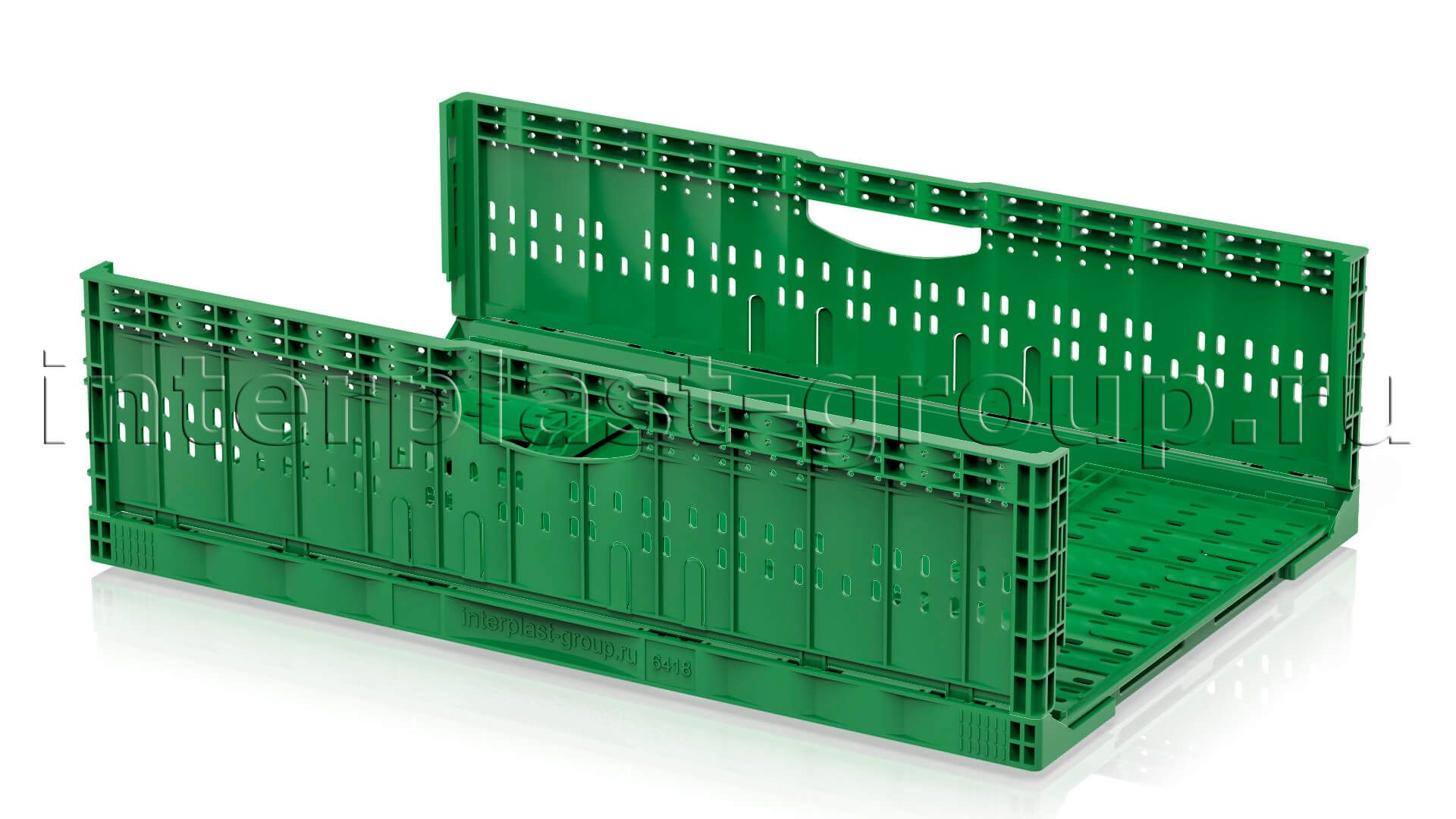 Складные ящики разработаны и спроектированы для хранения и перемещения плодо-овощных культур как внутри производства, так и между торговыми точками и складами. Благодаря функции складывания значительно экономят место при использовании в качестве возвратной тары. Перфорированные стенки обеспечивают сохранение свежести и сочность продуктов перфорации абсолютно на всех стадиях логистики. Штабелируются на паллетах 1200х1000 и 1200х800.